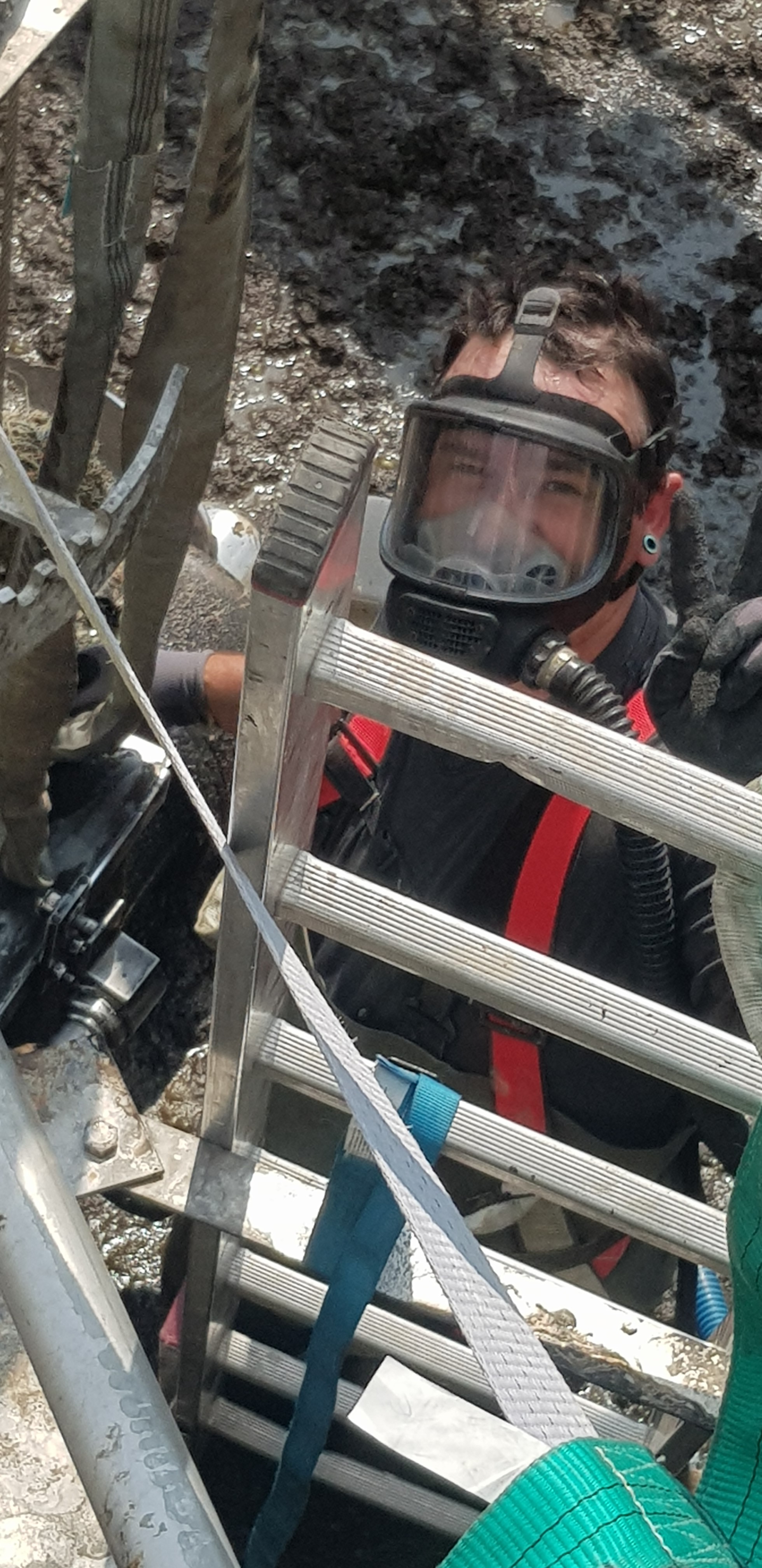 Beim Tauschen der Rührwerke und Güllepumpen kümmern wir uns bei Bedarf auch um das Öffnen und Schließen der Dachhaube. Unsere Monteure sind für derartige Einsätze geschult. Die erforderlichen Sicherheitsvorkehrungen und Geräte wie Atemschutz, Gaswarngerät und funkenhemmendes Werkzeug sind für uns selbstverständlich. Das Bild rechts zeigt beispielsweise einen unserer Monteure, vorschriftsmäßig gesichert und mit Atemschutz, beim Wechseln eines AT MIX Tauchmotorrührwerks.